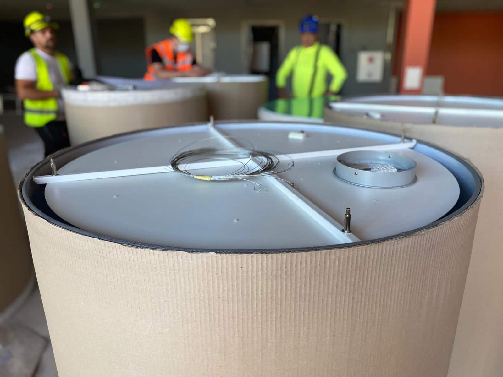 When visiting our clients we sometimes hear a doubt – “Can THIS even be done!?”, then we say : “Of course, it can be done!” Anything and everything can be done, the only question is : HOW and HOW FAST. In our latest mission – producing large lamps for the local J. Daliņa Valmiera stadium – we knew that nothing will get in our way. Even the production of such large objects (1500mm in diameter) each finished by hand was not a challenge to us.